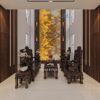 Khi không có ánh sáng, Tranh đá xuyên sáng khoác lên mình sự sang trọng với gam màu tự nhiên cùng các đường vân sống động. Khi kết hợp với hệ thống đèn LED vàng hoặc tím (tùy chọn theo nhu cầu), đá thạch anh Alpinus tạo hiệu ứng ánh sáng huyền ảo, giúp không gian trở nên lung linh và đẳng cấp hơn.
